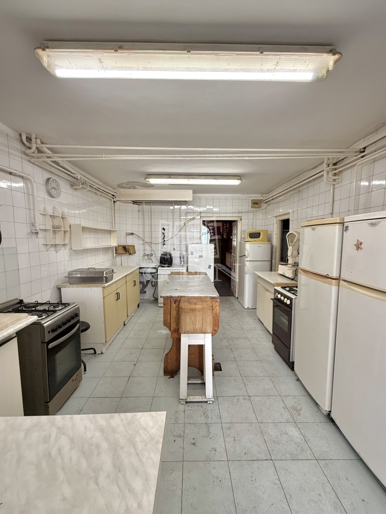 A helyiségben összesen 4 mosdó található: 2 női és 2 férfi, ami nagyobb vendégforgalom esetén is kényelmes használatot biztosít. A konyhából és a nagyteremből egyaránt megközelíthető egy közös belső udvar, amely további lehetőségeket rejt magában, például terasz vagy külön vendégtér kialakítására.