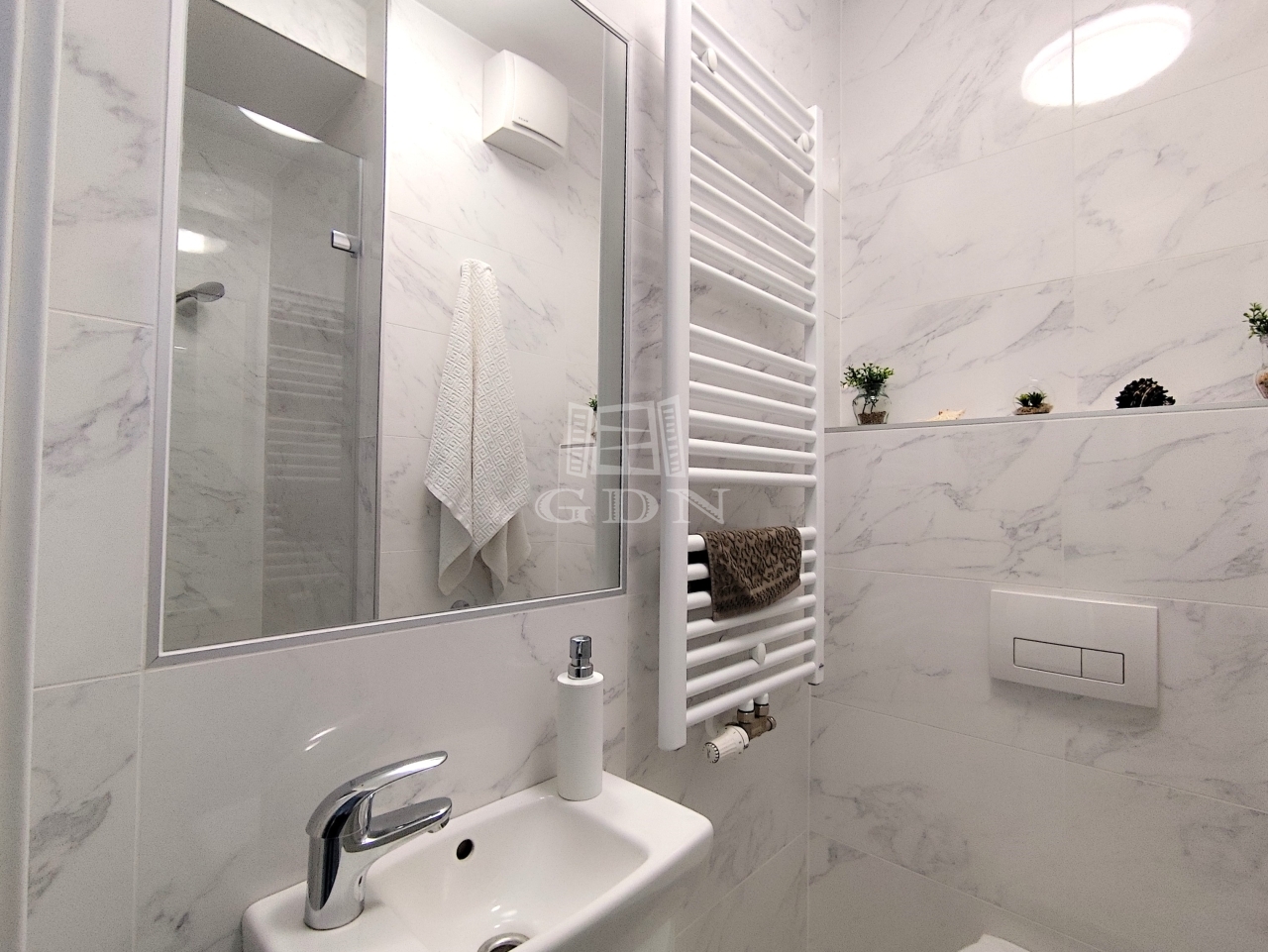 A fürdőszoba kádas, a WC külön helyiségben, zuhanyzóval kialakított – praktikus, átgondolt megoldás.