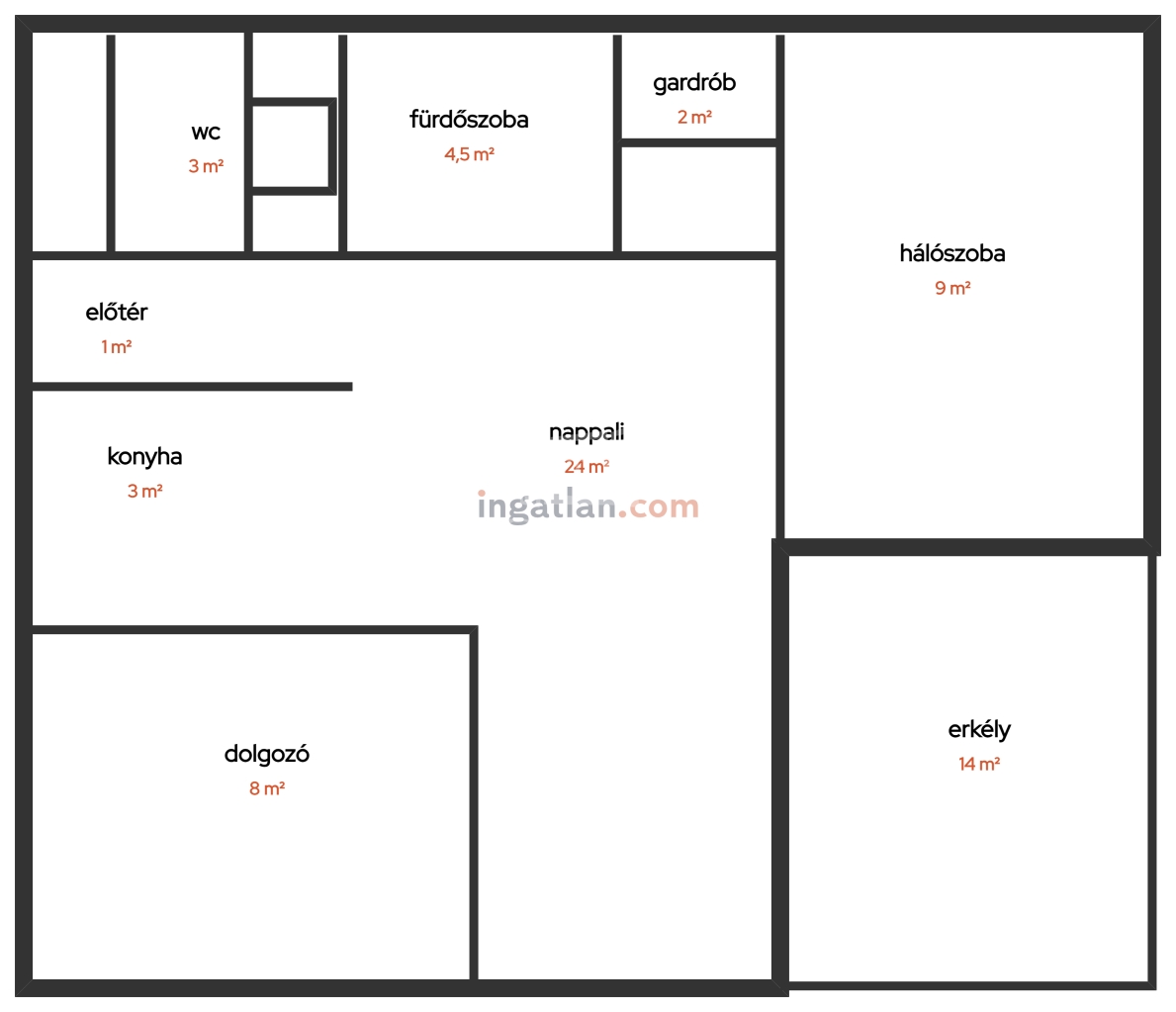 54 m2Alapterület 1 + 2 Szoba