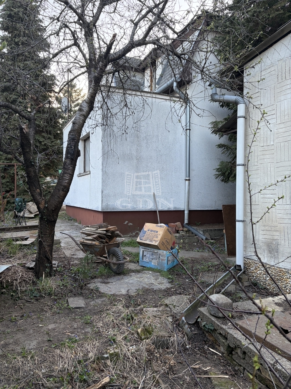 A háznak az egyik oldalán további lehetőség van még egy szoba kialakítására, mivel jelenleg szintén téglából hozzá van építve egy körülbelül 15 nm nagyságú tároló (normál belmagassággal).