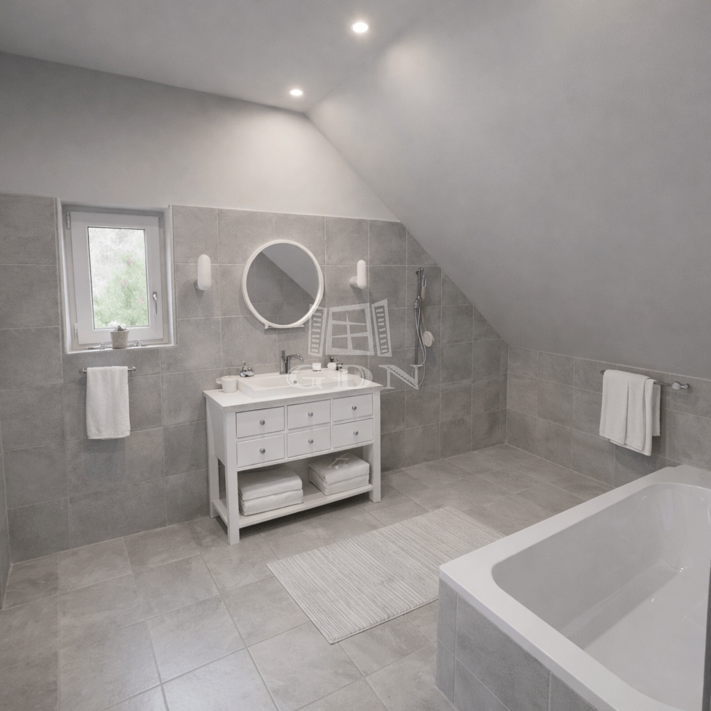 A ház kényelmét növeli, hogy mindkét szinten külön fürdőszoba áll rendelkezésre: az alsó szinten praktikus zuhanyzós, míg a felső szinten egy kádas fürdőszoba biztosítja a komfortot.