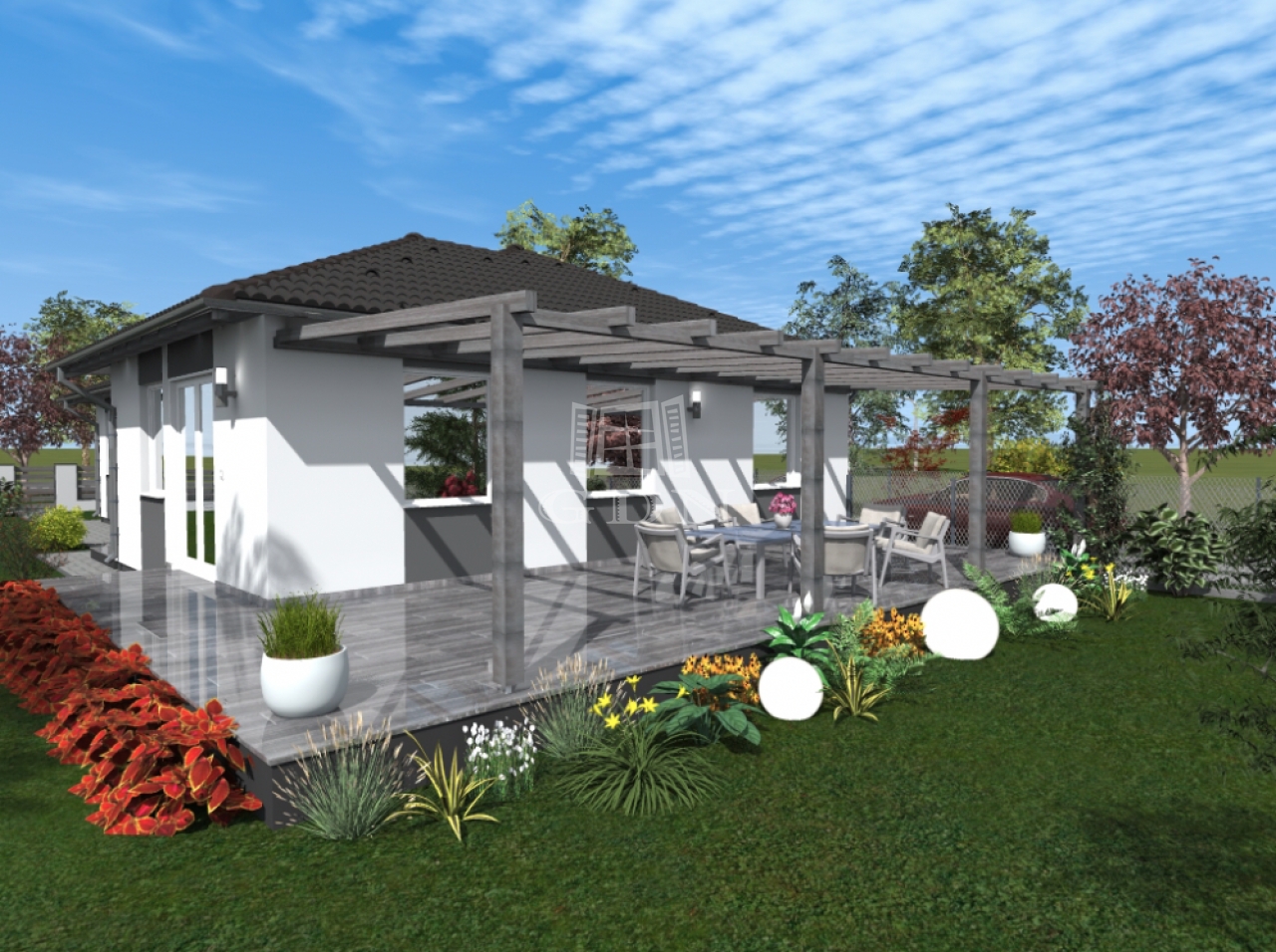 - választható homlokzat és cserép szín,