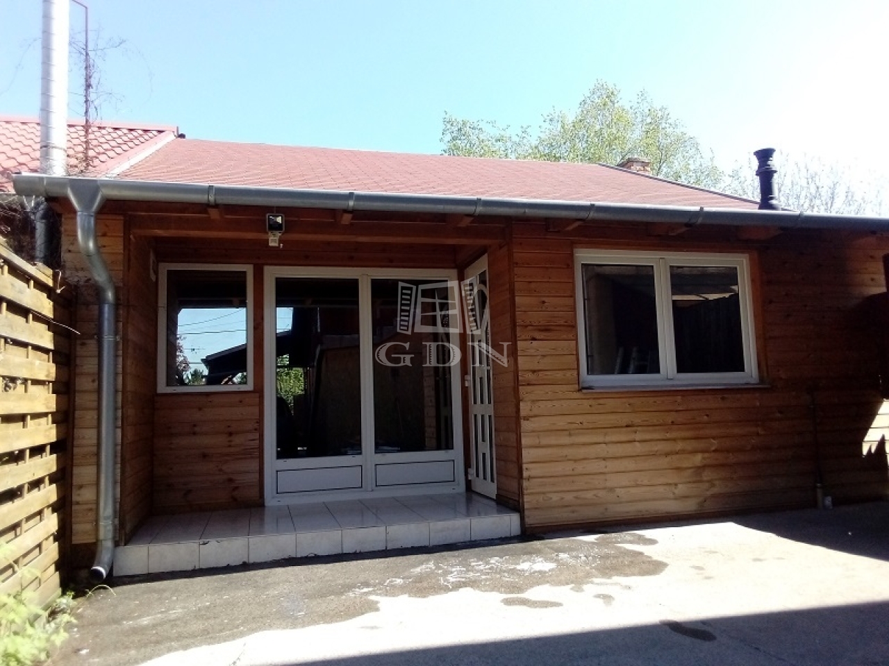 A tégla építésű főépülethez tartozik a 357 m2-es telek fele(178 m2) és egy könnyűszerkezetes épület kerítéssel leválasztva, fedett autó beállási lehetőséggel, elektromos kapun keresztül.