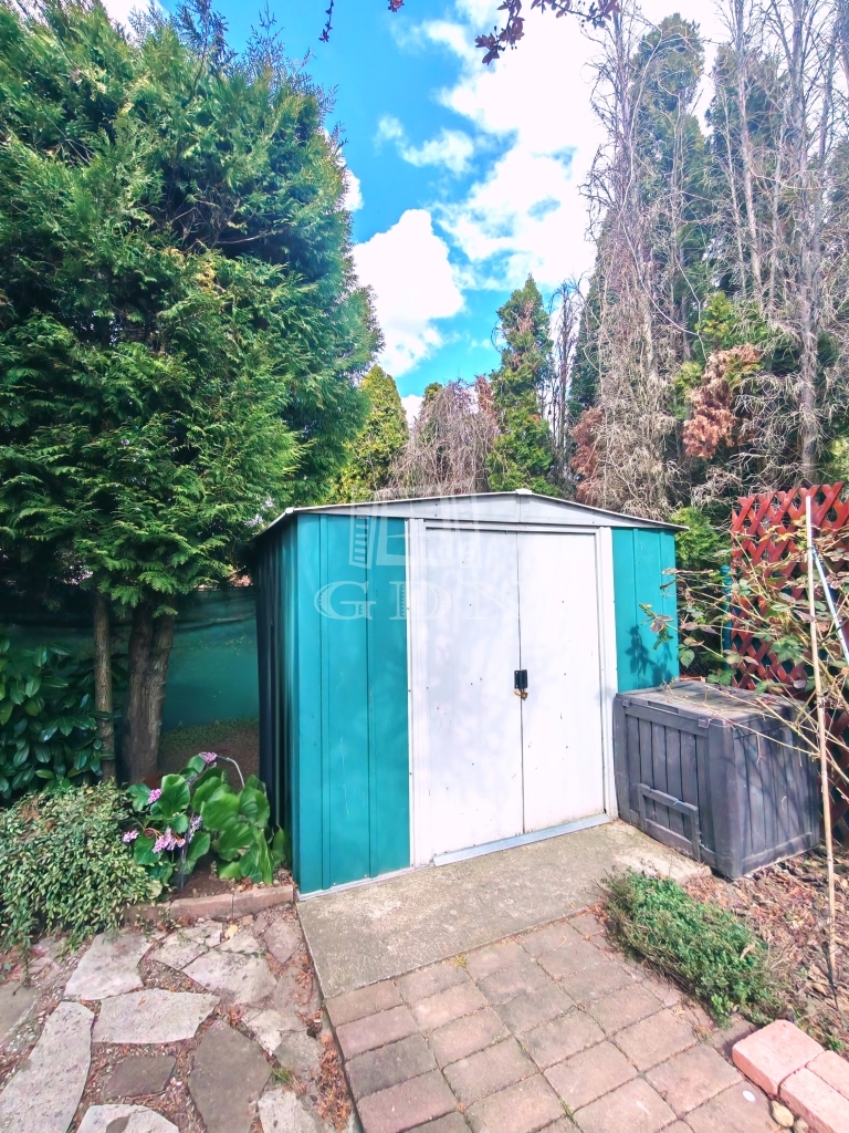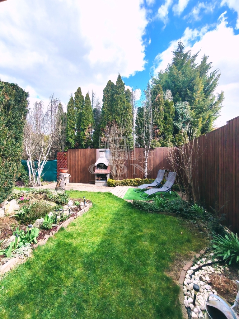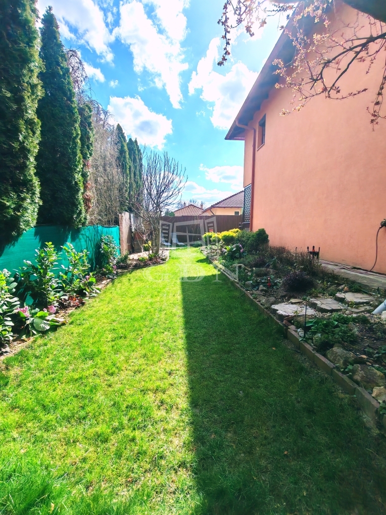 A hozzá tartozó 154 m²-es saját kert igazi érték ebben a kategóriában – rendezett, privát, és pont annyira tágas, hogy élvezni lehessen, ne pedig fenntartani. A 12 m²-es fedett terasz, az emeleti erkély és a kertben található, kb. 4 m²-es saját tároló tovább erősítik azt az életérzést, hogy itt a belső és külső terek harmonikusan kapcsolódnak egymáshoz.